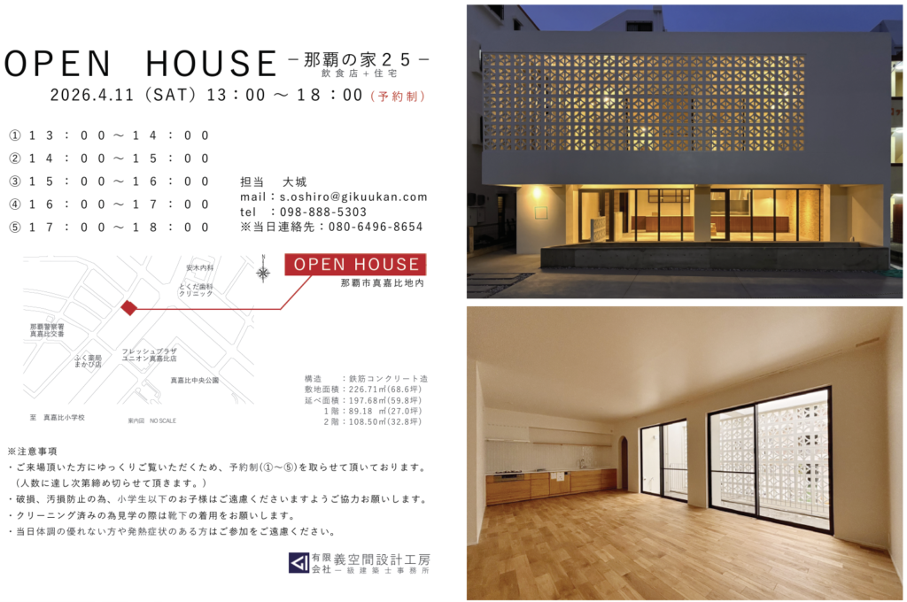 「那覇の家25」のOPEN HOUSEを行います。